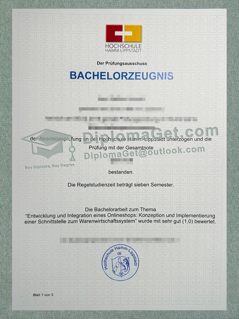 哈姆-利普施塔特应用科技大学证书, Hochschule Hamm-Lippstadt Urkunde